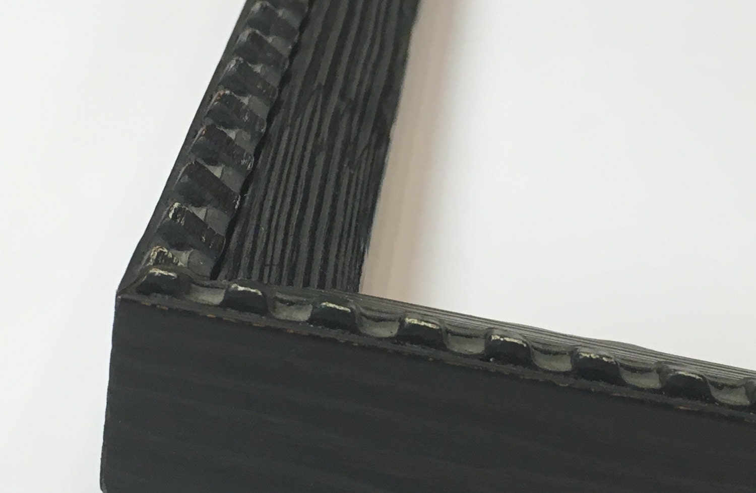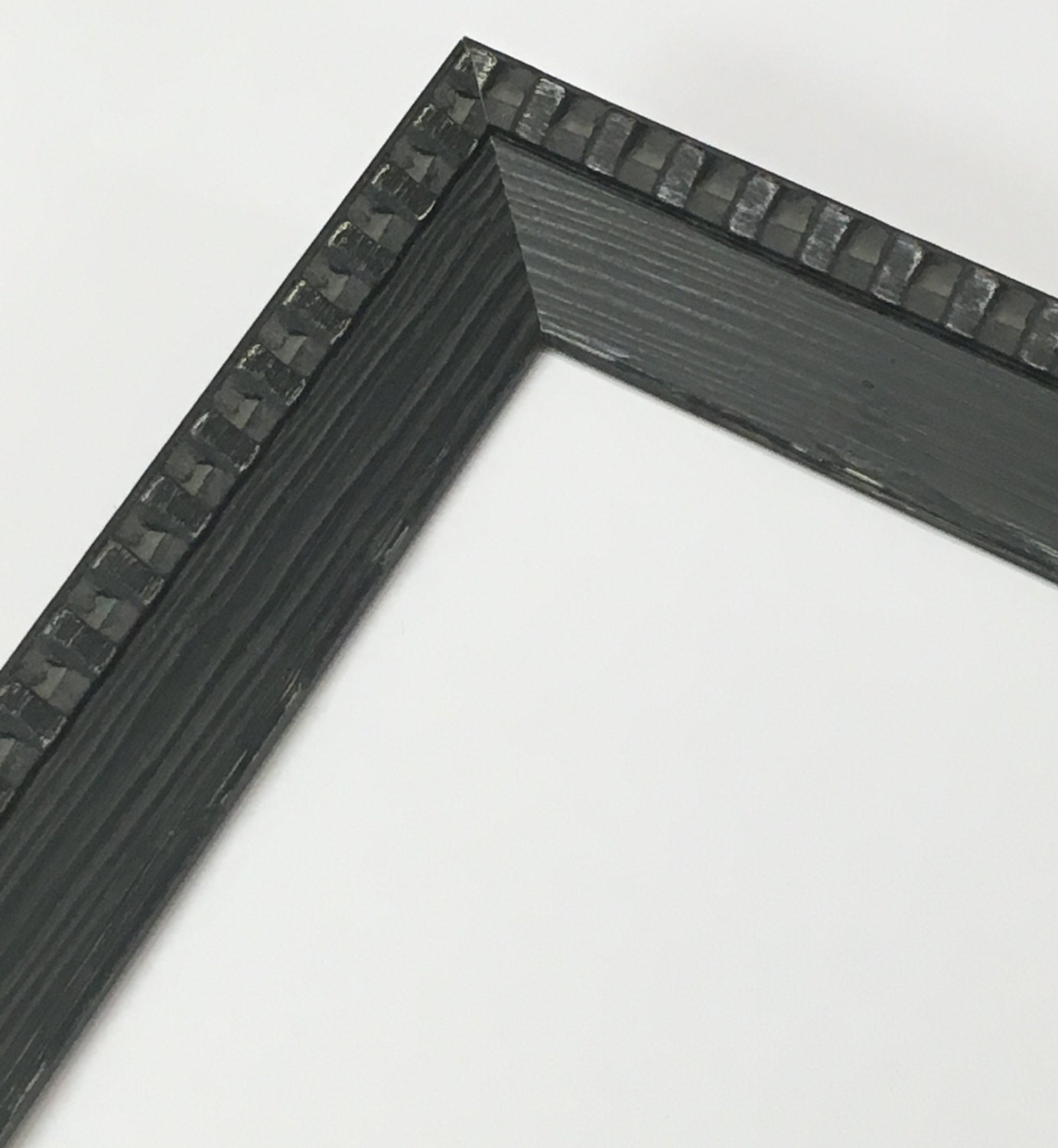 This picture frame has an aged painted finish and a wonderful dentil pattern on the outside edge. Some call the color 'charcoal', Restoration Hardware would call it 'flint'.